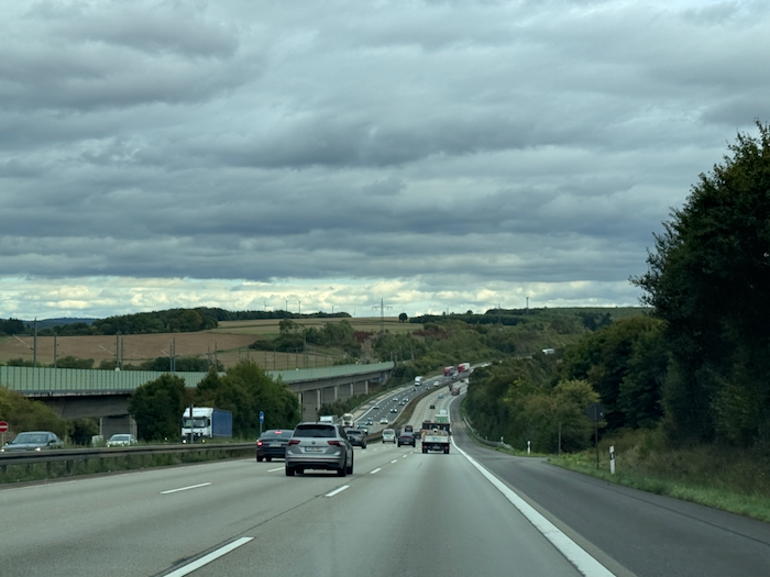 Kleiner Zwischenstopp zum Strom-Laden (und Essen), damit wir auf der Rückfahrt direkt durchfahren können. Der Wagen bleibt im Parkhaus stehen. Das ist etwas außerhalb bei Terminal 3 und wir fahren mit dem Shuttlebus noch etwa 30 Minuten bis zum Flughafen.