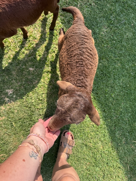 Zwei Rasenmäher auf vier Beinen laufen hier herum.