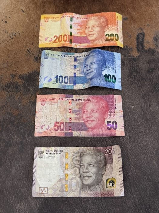 Ob Namibischer Dollar oder Südafrikanischer Rand: das ist gleich viel wert. Umrechnung: 1:20