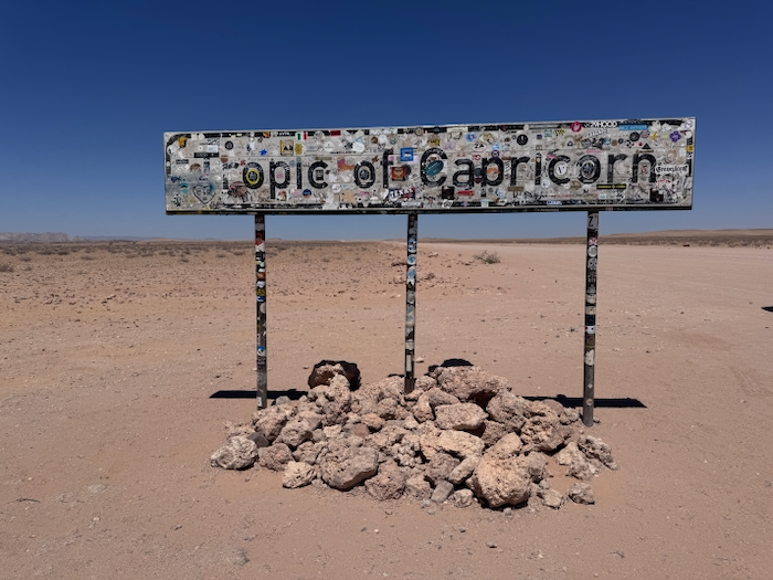 Wieder etwas über eine Stunde später passieren wir Tropic of Capricorn. Been there, doe that.