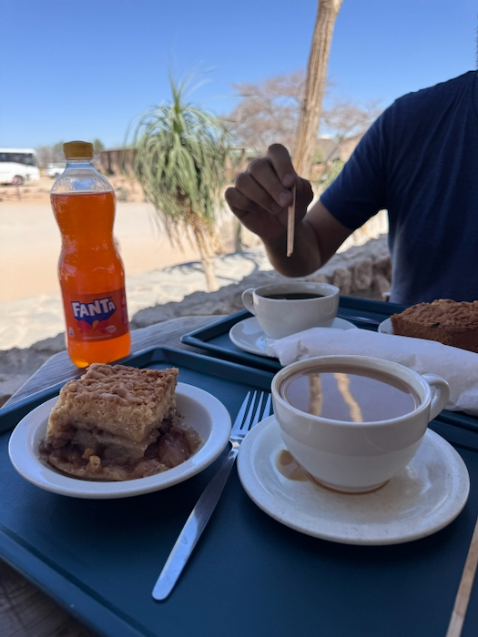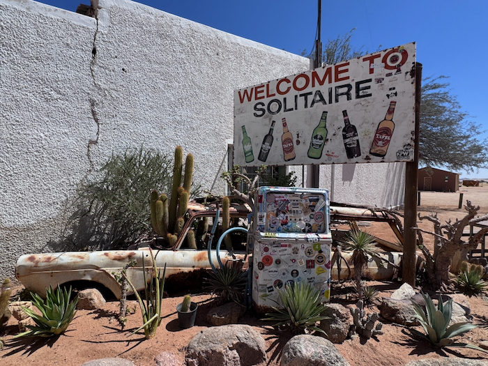 Highlight des Tages ist Solitaire. Hier mitten im Nichts werden wir tanken und den besten Apfelkuchen des Landes essen, so sagt man.