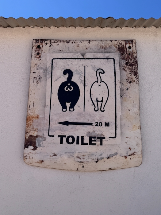 Alle hundert Meter gibt es fabelhafte Sanitärhäuschen. Klopapier ist sogar auch vorhanden.