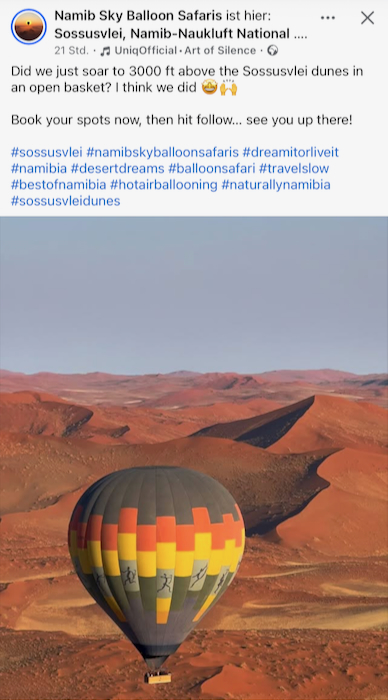Die Internetverbindung ist in Namibia sehr gut ausgebaut. Selbst mitten im Nirgendwo habe ich Empfang und bekomme über facebook diese Nachricht:
