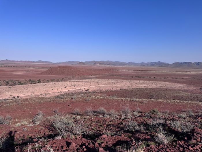 Dann sind es fast drei Stunden für 160 km Schotterstraße bis zum Ort Aus. Verblüffend, dass der Schotter immer wieder andere Farben hat.