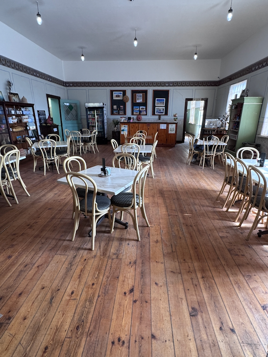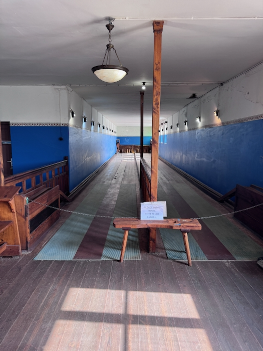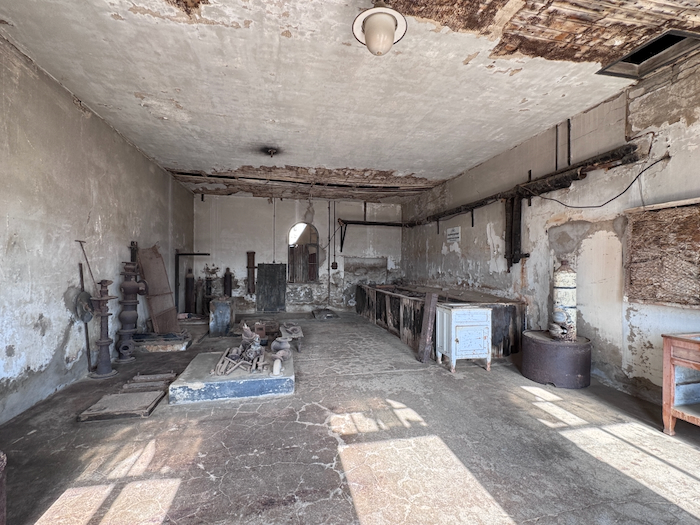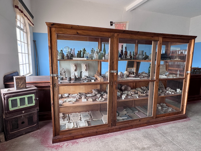 Neugierig wie ich bin schaue ich, ob man die Türen öffnen kann. Ja, die Gebäude sind offen und man darf sie betreten. Wir schauen uns die Eisfabrik, das Schlachthaus und das Haus des Ladenbesitzers an. Im Laden befindet sich ein kleines Museum, das noch im Aufbau ist.