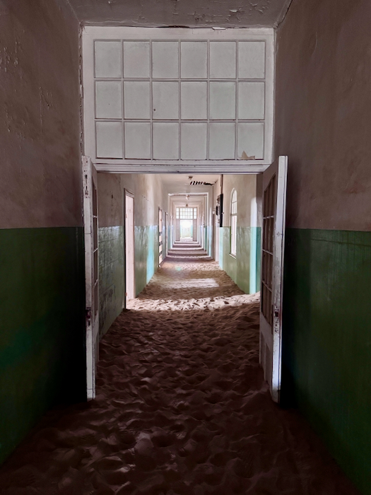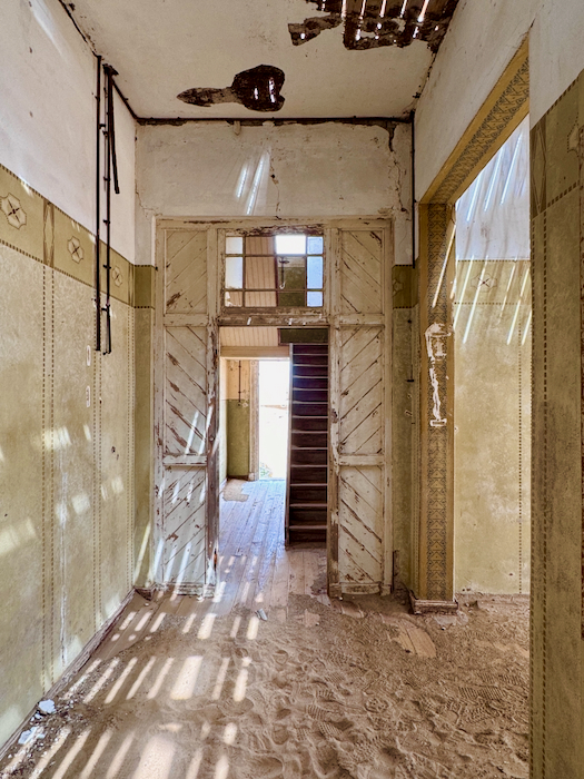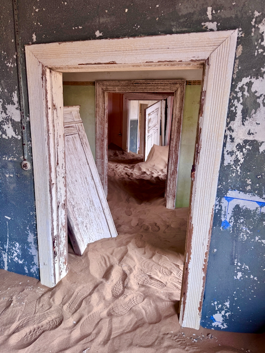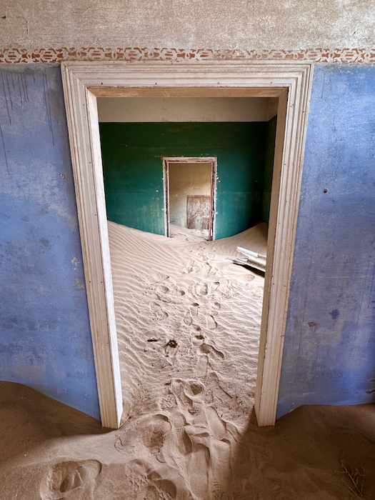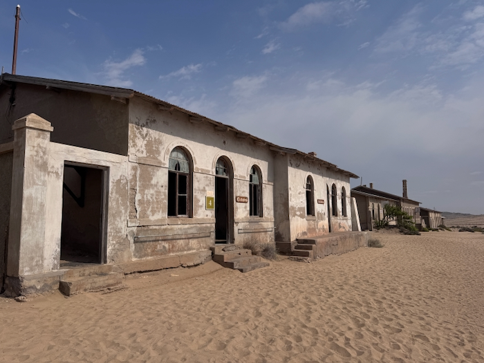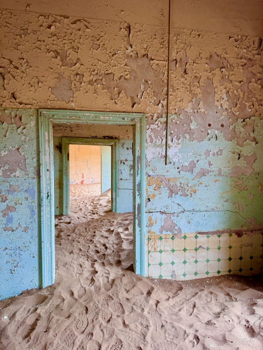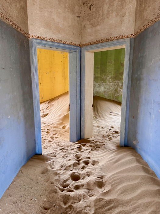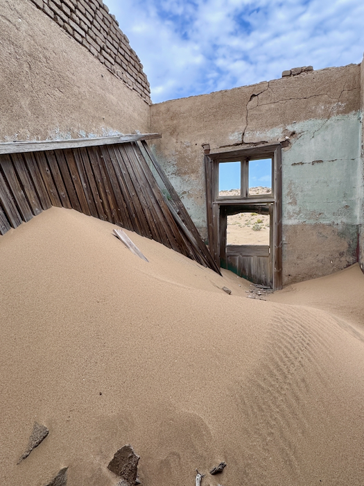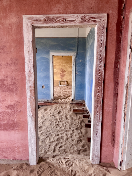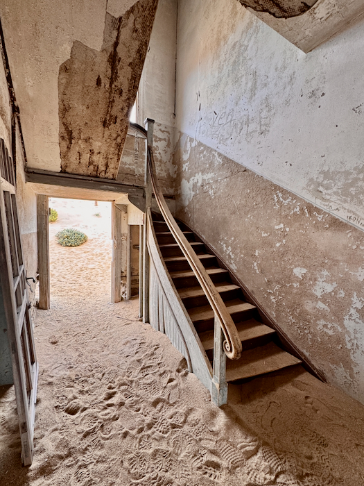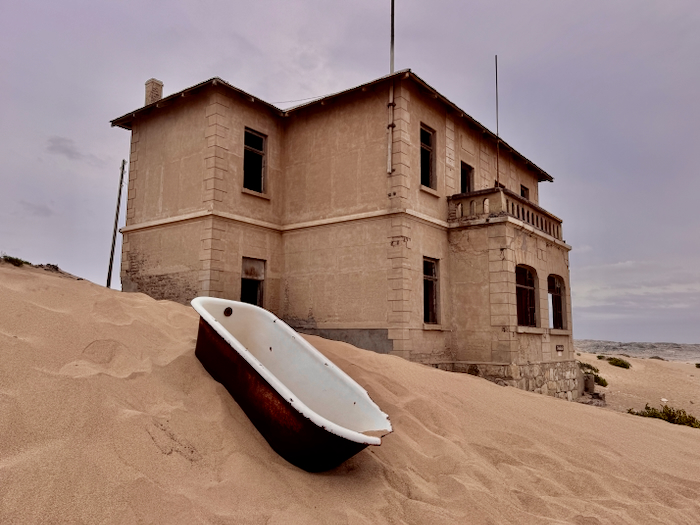 Kolmanskop: Der Ort entstand 1908 nach einem Diamantenfund und war kurzzeitig die reichste Stadt Afrikas, bis die Diamantenvorkommen erschöpft waren und die Stadt in den 1950er Jahren verlassen wurde. Heute sind die einst prächtigen Gebäude von Sand bedeckt und erzeugen eine mystische Atmosphäre.