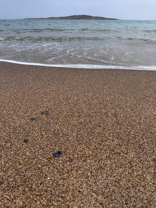 Wenn man genauer hinschaut sieht man, dass der ganze Strand aus Halbedelsteinen besteht: aus Achaten.
