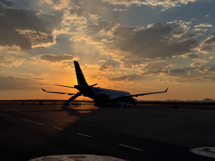 Der Flieger steht hier in der Sonne und es geht wieder zurück nach Hause.