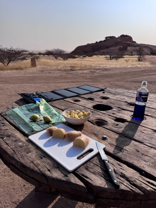 Es ist ziemlich windig und unsere Kochstelle wirkt etwas improvisiert.