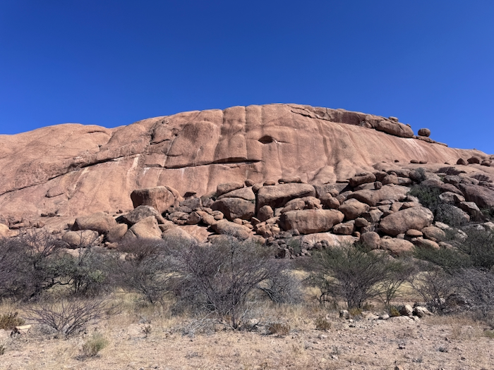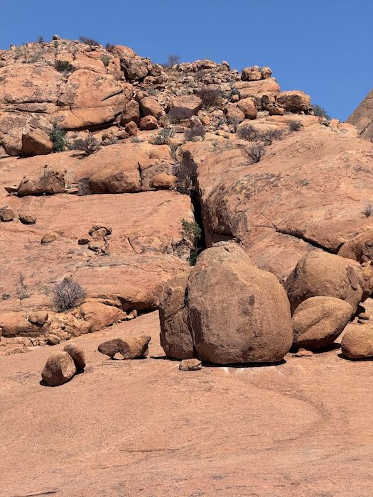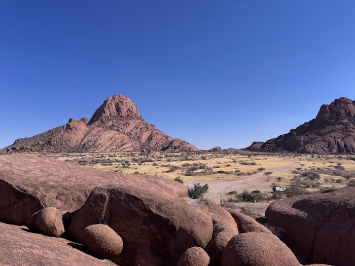 Wir haben es nicht eilig, denn wir werden uns den ganzen Tag an der Spitzkoppe aufhalten können; wir haben eine weitere Übernachtung gebucht.