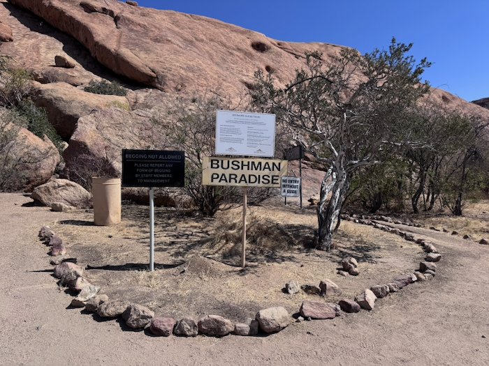 bevor wir uns die Felszeichnungen ansehen. Dort treffen wir auf eine freundliche Dame, die etwas zur Geschichte der Malereien erklärt.