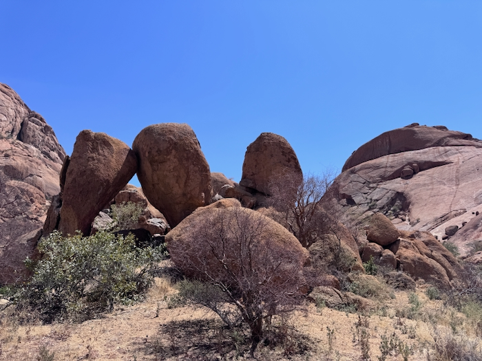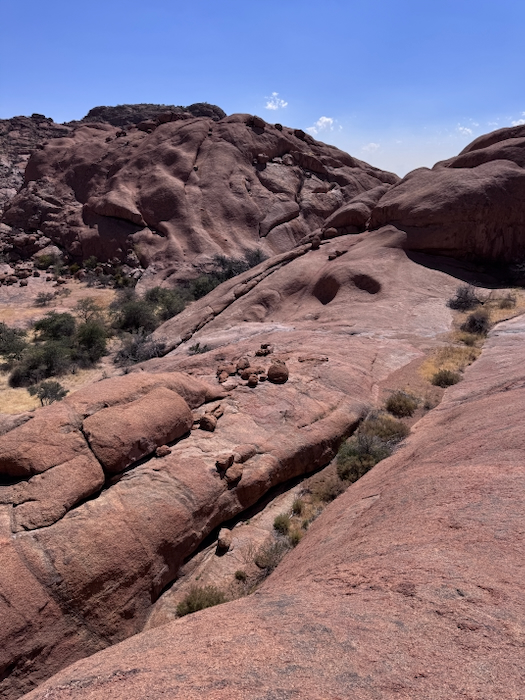 Beim Pool steigen wir aus und laufen ein wenig durch die Felsen, aber Wasser ist an dieser Stelle zu dieser Jahreszeit nicht zu sehen.